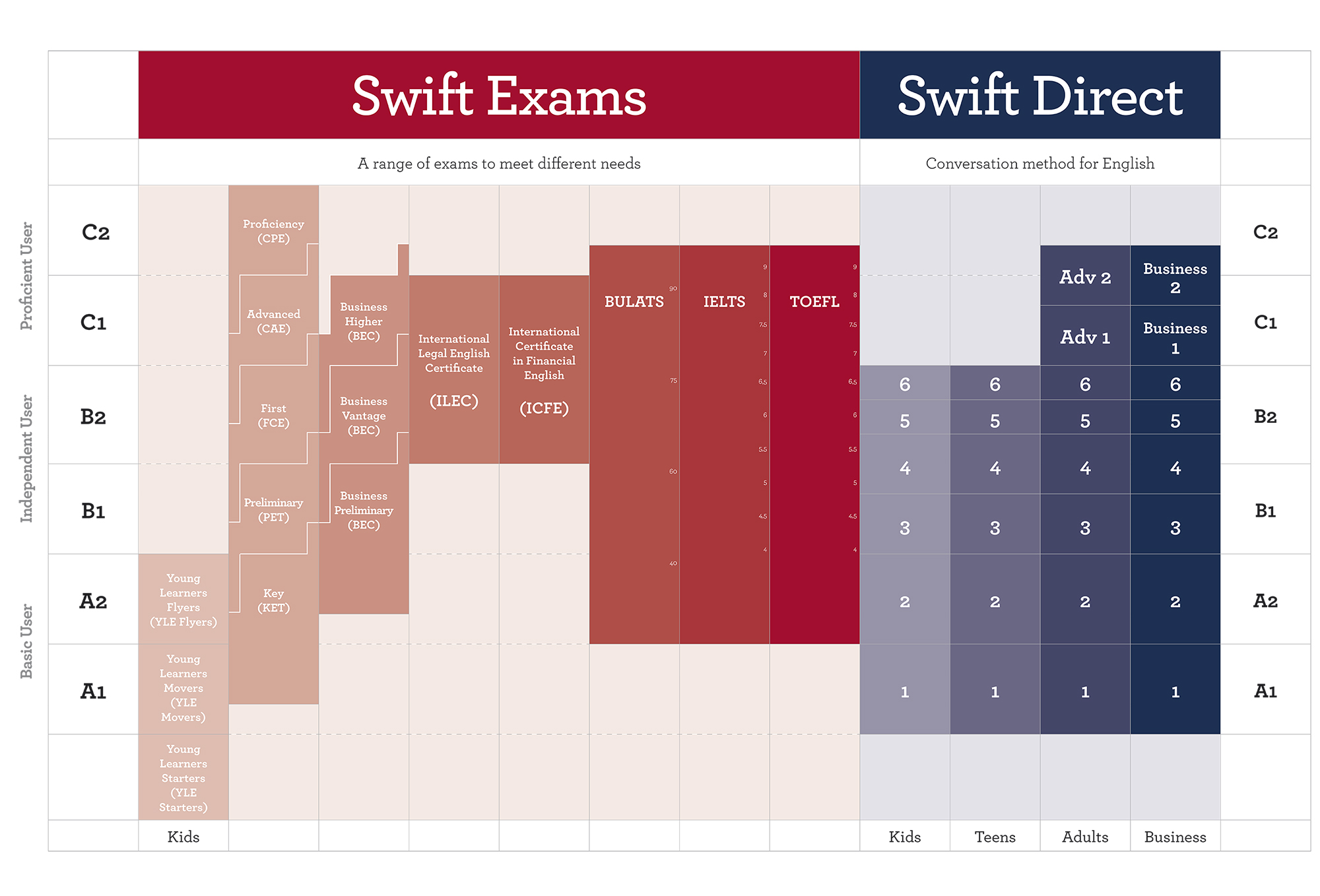 Specialized preparation for Cambridge, IELTS, TOEFL, Aptis, and more.